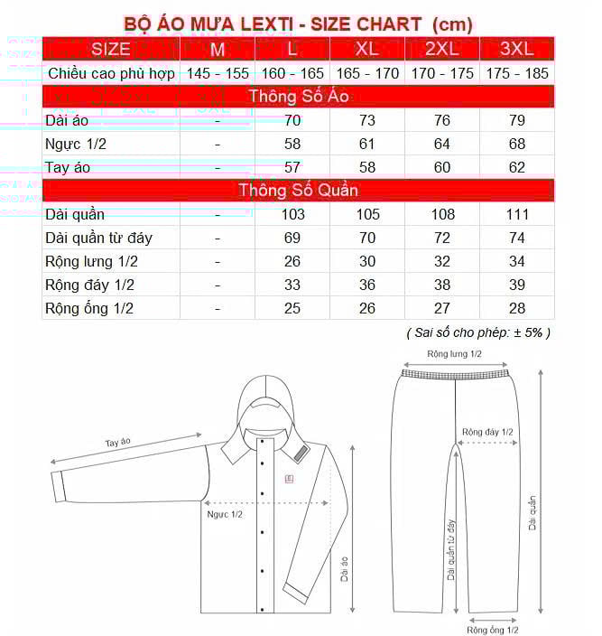 Thông tin chi tiết Áo mưa bộ LEXTI