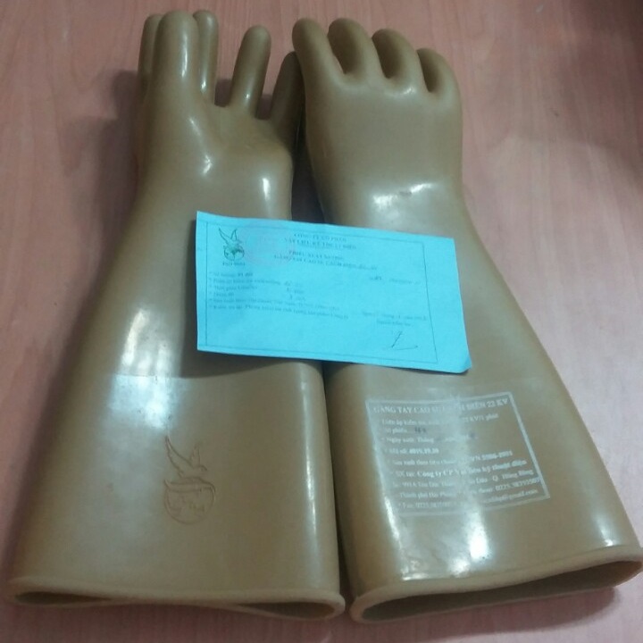 Đặc trưng: Găng tay cách điện trung áp Vicadi, 22kv dài tới khủy tay, tang bảo vệ tay.