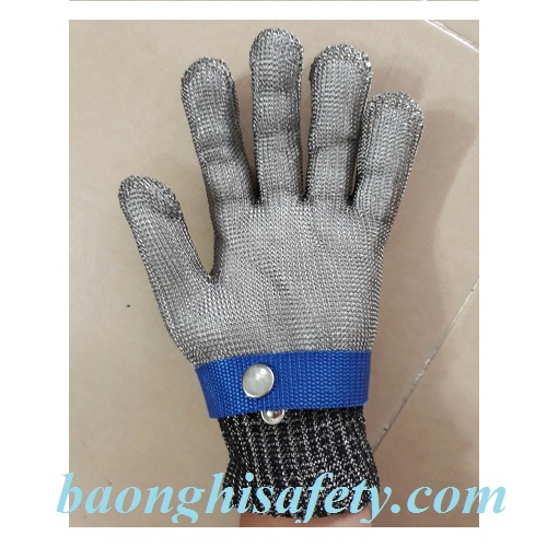 GĂNG TAY CHỐNG CẮT SỢI THÉP LOẠI NGẮN có dây đeo chắc chắn, có nút khóa dễ dàng điều chỉnh.