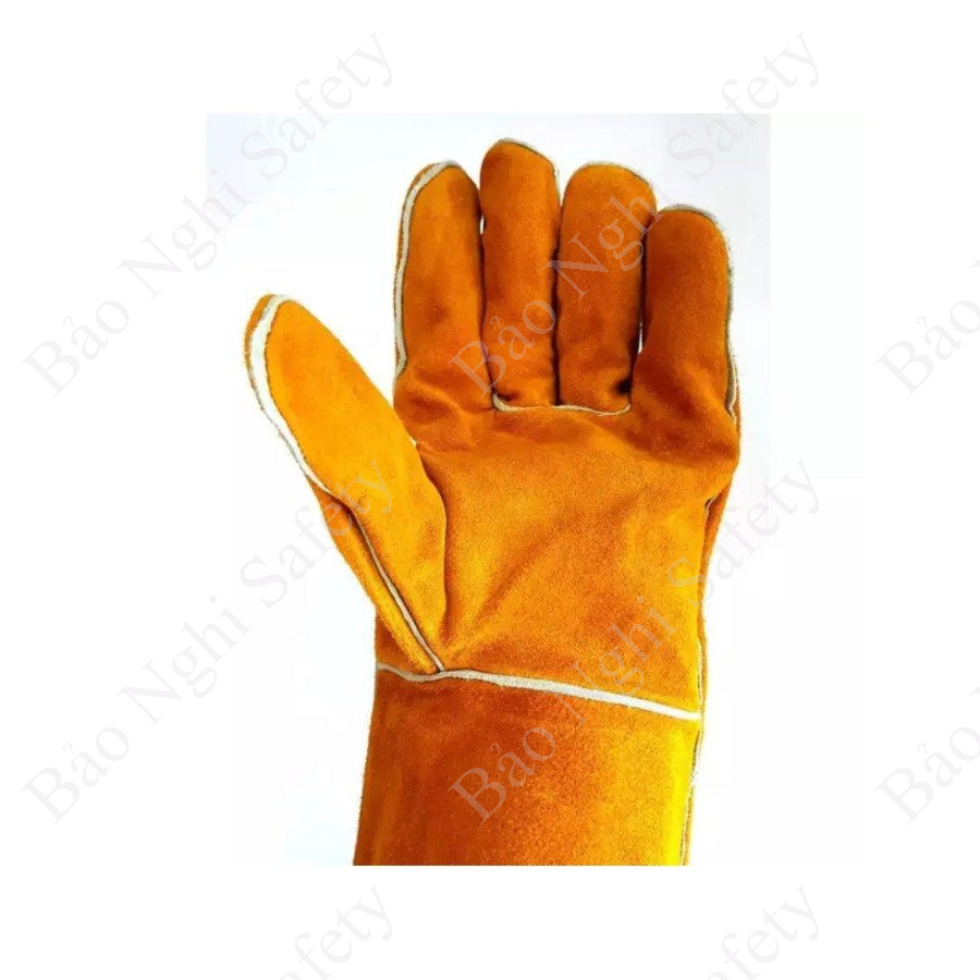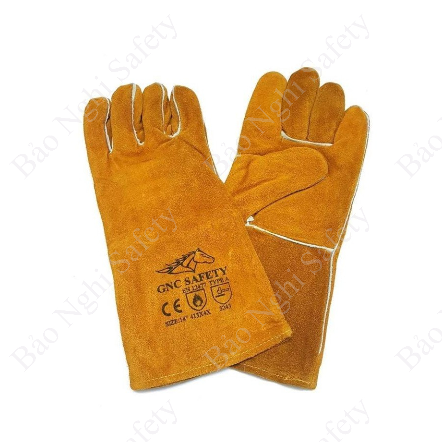 - Găng tay da hàn GNC chiều dài 16 inch, che phủ cả phần cẳng tay, chống tia lửa văng và kim loại nóng chảy.