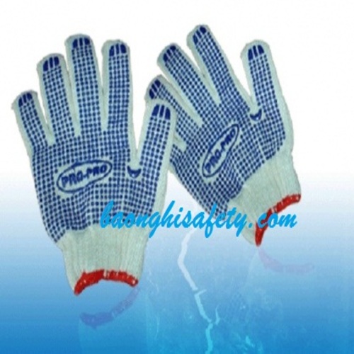Găng tay phủ hạt nhựa Pro - Pro (40g) 100% Cotton hoặc 100% Polyester phủ hạt nhựa chống trơn trượt trong lòng găng tay.