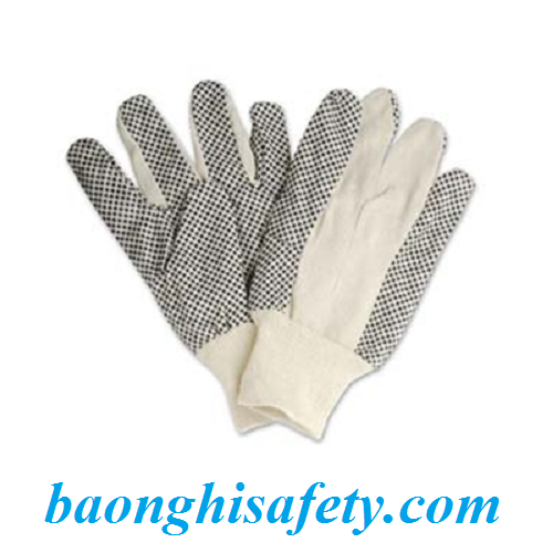 Chất liệu: vải sợi cotton. GĂNG TAY VẢI PHỦ HẠT NHỰA ĐEN POLKADOTđược phủ nhựa vàng hoặc đen giúp cầm nắm vật chắc chắn, tạo cảm giác tốt nhất.