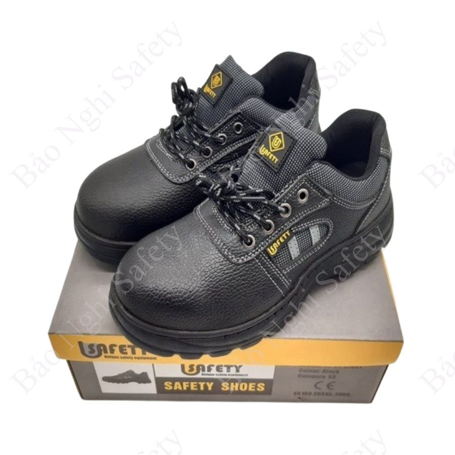 - Giày bảo hộ lao động cổ thấp Usafety không chống thấm nước – chỉ dùng trong môi trường khô.