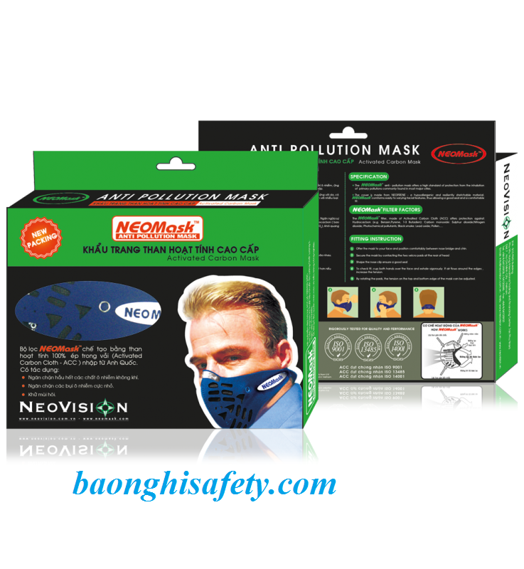 KHẨU TRANG CAO CẤP NEOMASK bảo vệ sức khoẻ con người chống không khí ô nhiễm, ứng dụng kỹ thuật và công nghệ nước ngoài với vật liệu chế tạo hoàn toàn ngoại nhập.