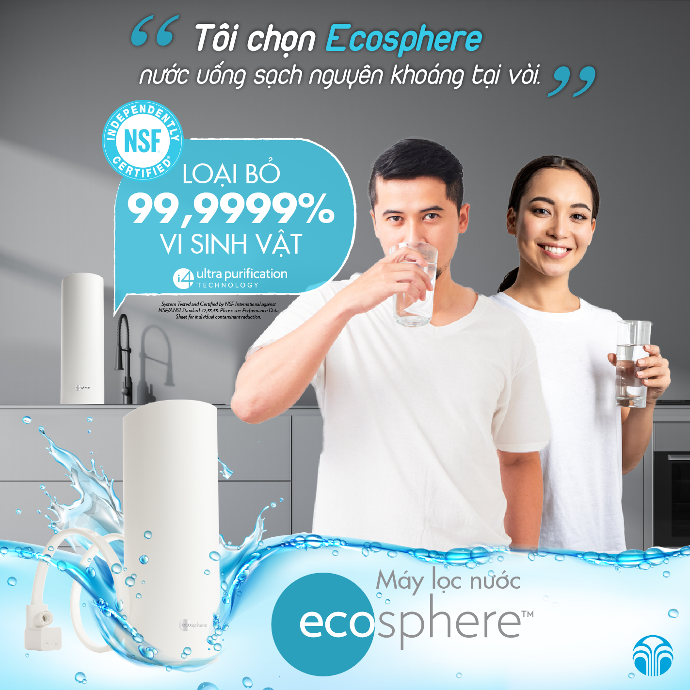 Với công nghệ đột phá giúp loại bỏ 99.9% vi khuẩn và các mầm bệnh máy lọc nước Ecosphere Hoa Kỳ thực sự là sự lựa chọn phù hợp để bạn có thể yên tâm sử dụng hàng ngày, đảm bảo nguồn nước sạch cho mình và gia đình.
