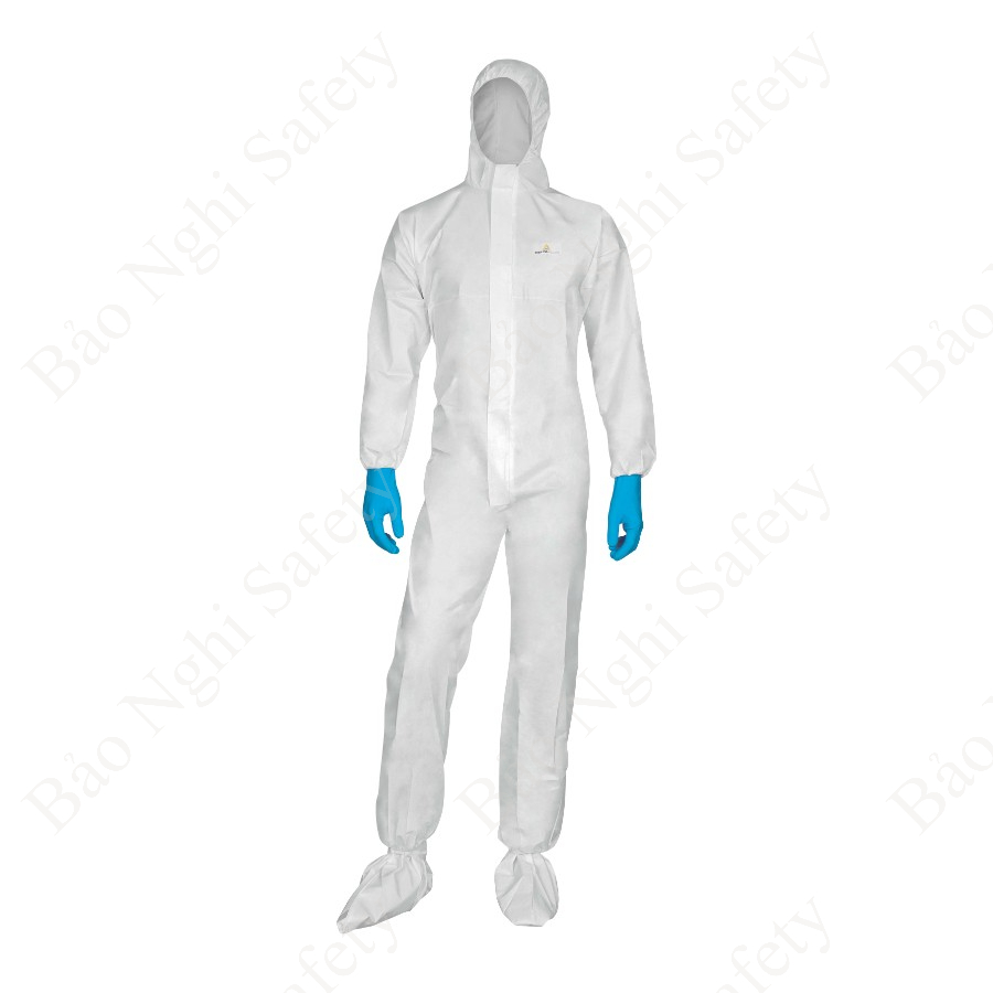 - Quần áo chống hóa chất đạt chuẩn type 5 và type 6 trong chống bụi độc hại và chống giọt bắn hóa chất.