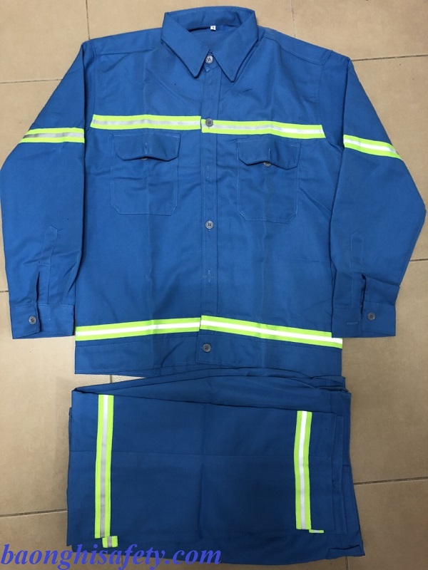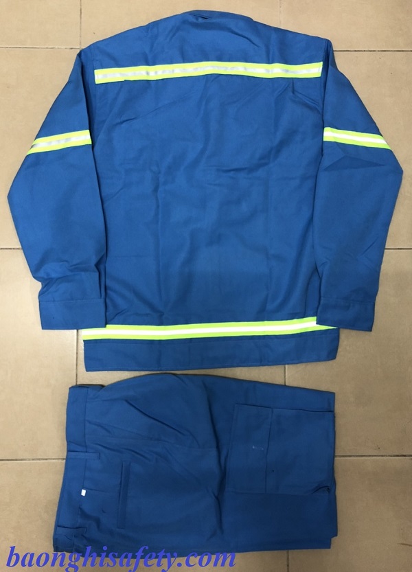 Trên thân áo thì hai cánh tay và quần được may các đường phản quang. Giúp an toàn hơn khi làm việc vào ban đêm