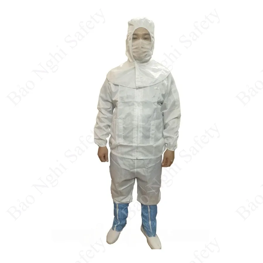 Đặc điểm: QUẦN ÁO PHÒNG SẠCH CHỖNG TĨNH ĐIỆN BỘ RỜI - CÓ MŨ có thể chống hóa chất nhẹ, chống vi khuẩn, tĩnh điện