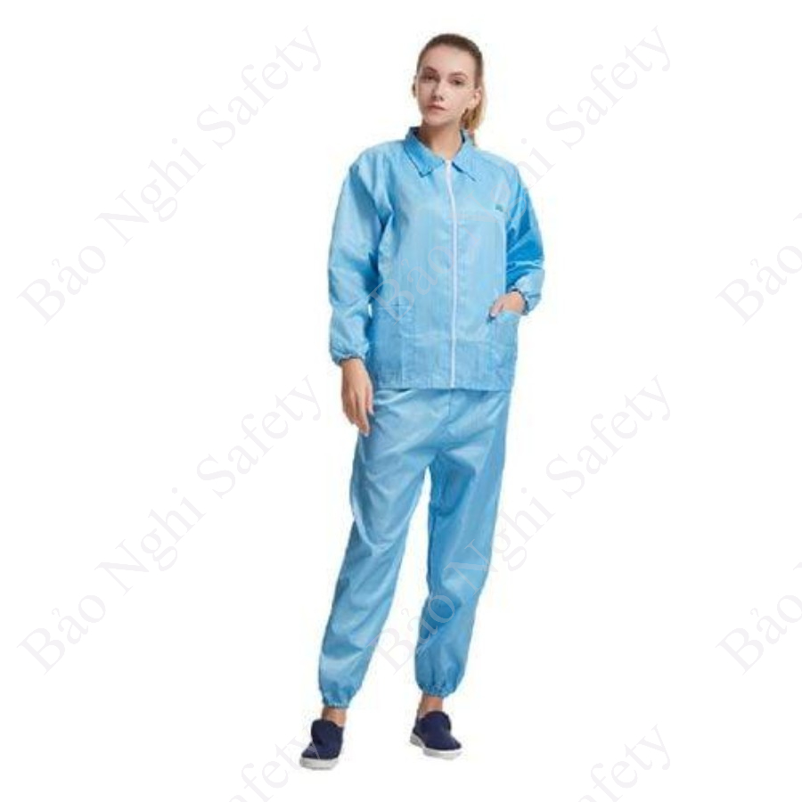 Đặc điểm: QQUẦN ÁO PHÒNG SẠCH CHỖNG TĨNH ĐIỆN BỘ RỜI - KHÔNG MŨ có thể chống hóa chất nhẹ, chống vi khuẩn, tĩnh điện