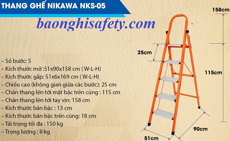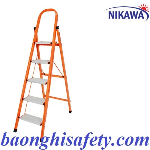 THANG GHẾ NIKAWA NKS 05 có bậc trên cùng thiết kế rộng, giúp người sử dụng có thể đứng vững chắc mà không cần người giữ.