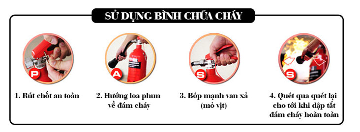 Với những hướng dẫn cũng như hình minh họa bên trên, hi vọng sẽ phần nào giúp ích cho Quý khách hàng trong việc lựa chọn bình chữa cháy đúng, cách sử dụng bình chữa cháy để đảm bảo an toàn cho người và của mỗi khi có cháy xảy ra.