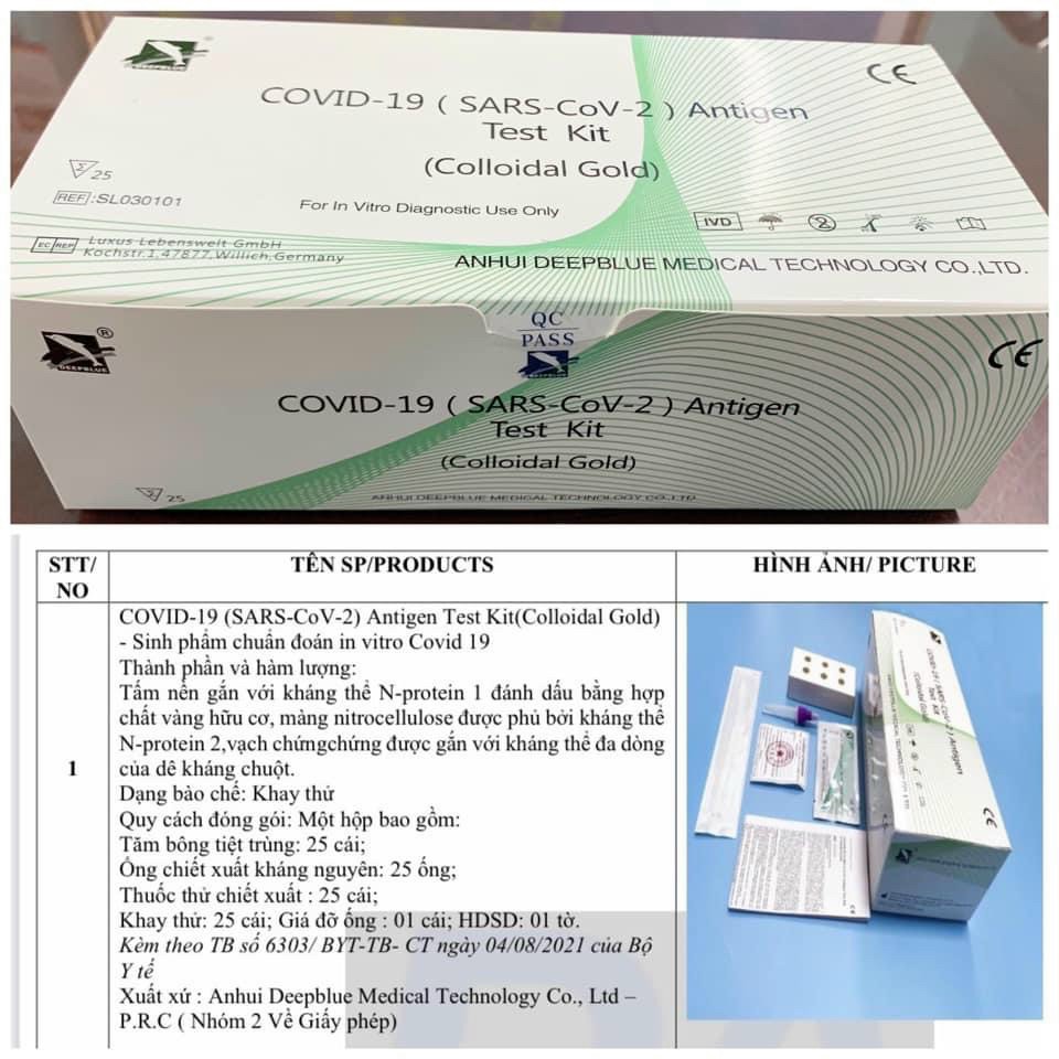 Kit Test xét nghiệm kháng nguyên COVID-19 (SARS- CoV-2) Antigen Test Kit (Colloidal Gold) trong dịch tỵ hầu. Hàng chính hãng của Anhui Deepblue Medical Technology Co...