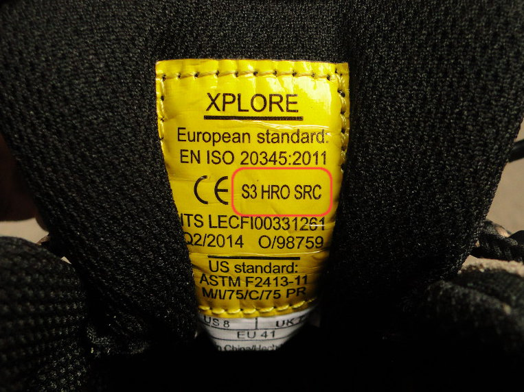 Dựa trên Tiêu chuẩn EN ISO 20345, có nhiều lớp an toàn khác nhau Ví dụ như: SB, S5. Các sản phẩm giày bảo hộ lao động nếu muốn đạt được Tiêu chuẩn EN ISO 20345 sẽ được thực hiện qua các bài kiểm tra về tất cả các khía cạnh có thể và nếu thông qua sẽ được cấp S-class.