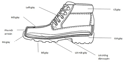 - Pho mũi an toàn: Là phần bên trong giày để bảo vệ các ngón chân của người sử dụng tránh khỏi các thương tích do va đập.