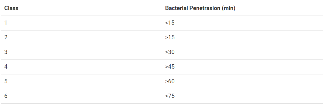 - Đây là tiêu chuẩn đánh giá xem bộ quần áo chống hóa chất có đủ khả năng chống lại việc xâm nhập (thấm) của máu và dịch cơ thể.