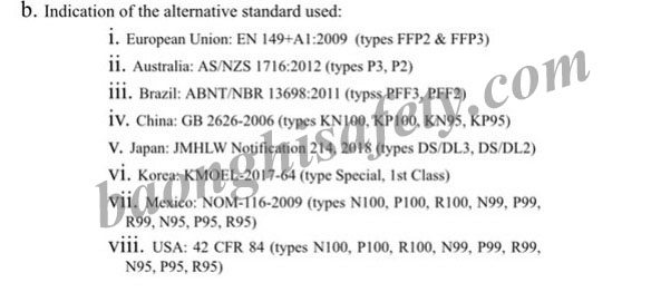 Đây là bảng Tiêu chuẩn Khẩu trang của một số Quốc gia trên thế giới và được sử dụng theo khuyến cáo của WHO: