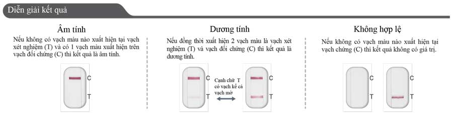 - Test không hợp lệ: nếu chỉ có 1 vạch ở chữ T và không có vạch nào ở chữ C hoặc không có vạch nào ở cả 2 chữ T và C.