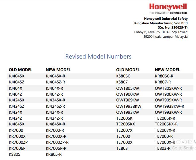 Chúng tôi Thông Báo đến Quý khách hàng về việc bảng mã thay thế giầy HONEYWELL