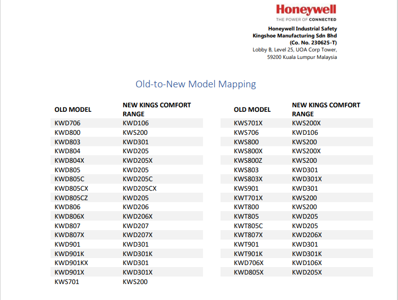 THÔNG BÁO BẢNG MÃ THAY THẾ GIẦY HONEYWELL