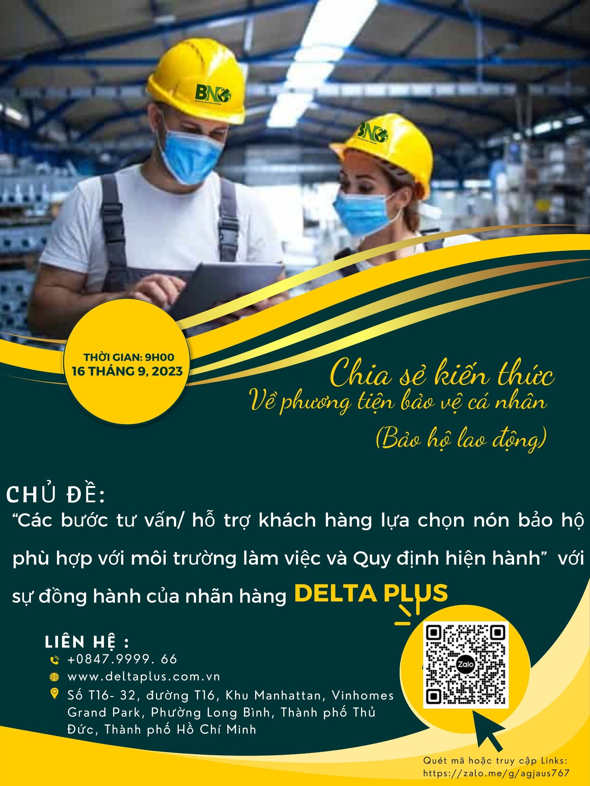 THÔNG BÁO LỊCH CHIA SẺ KIẾN THỨC VỀ PHƯƠNG TIỆN BẢO VỆ CÁ NHÂN ( BẢO HỘ LAO ĐỘNG) VỚI SỰ ĐỒNG HÀNH CỦA NHÃN HÀNG DELTAPLUS