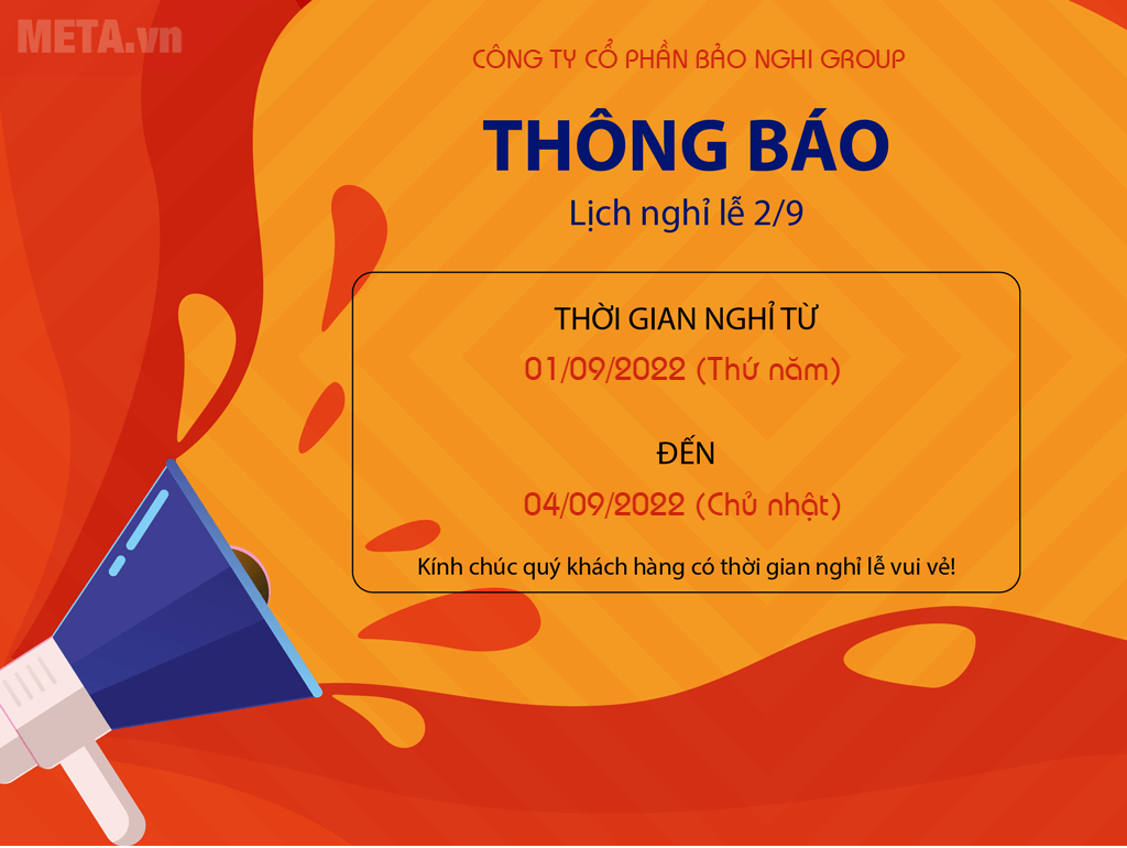 Công ty Cổ Phần Bảo Nghi Group trân trọng thông báo đến Quý khách hàng, các đối tác và toàn thể nhân viên lịch nghỉ Lễ Quốc khánh 2/9/2022 như sau: